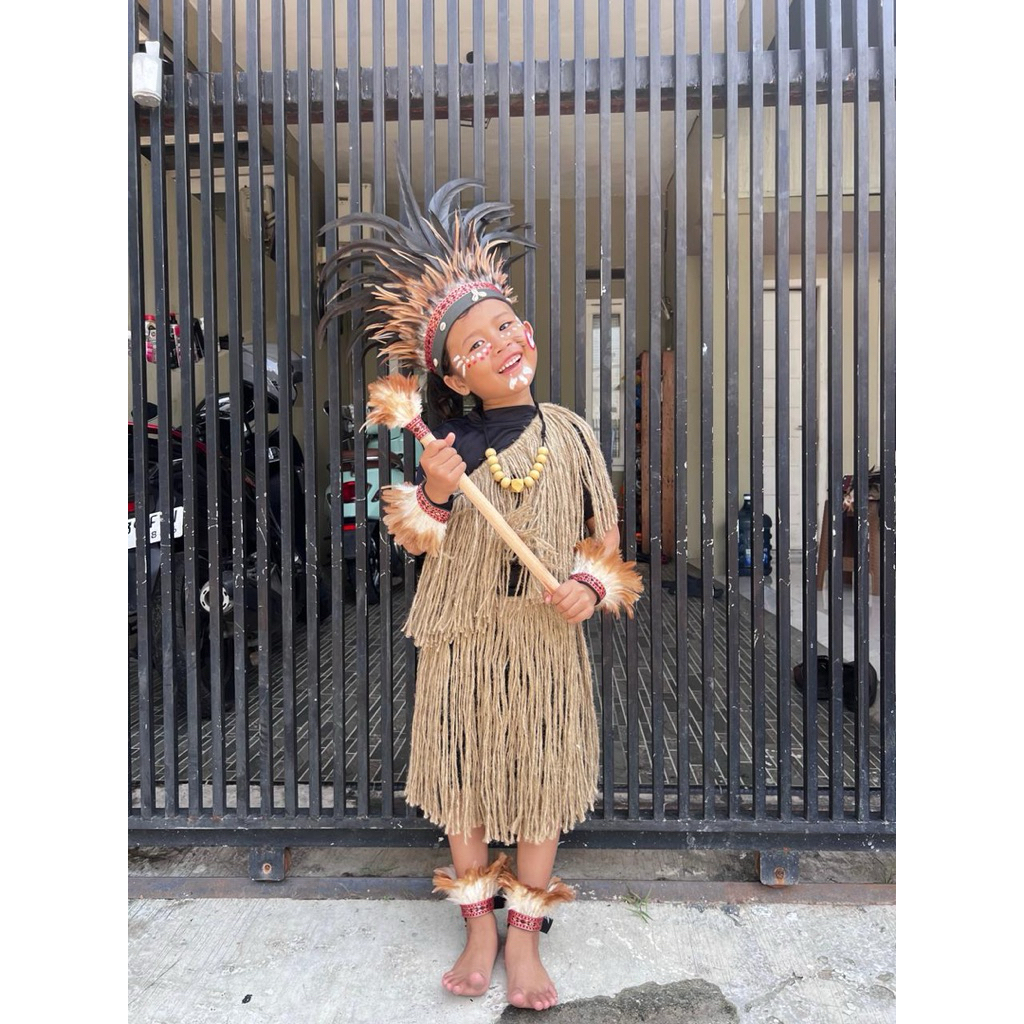 Acc tangan bulu, Rumbai dada anak, Topi anak & dws, Acc kaki bulu, Rok goni S, Rumbai dada dws, Rok goni M, Tongkat, Mahkota anak & dws, Kalung