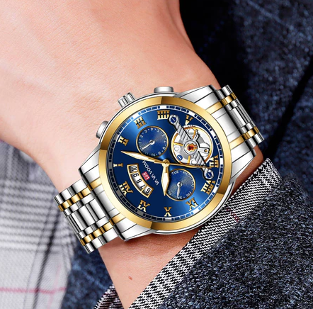 VA VA VOOM 2453 Jam Tangan Pria Luxury Stainless Steel Analog Quartz Original Tahan Air Watch + Kotak Gratis