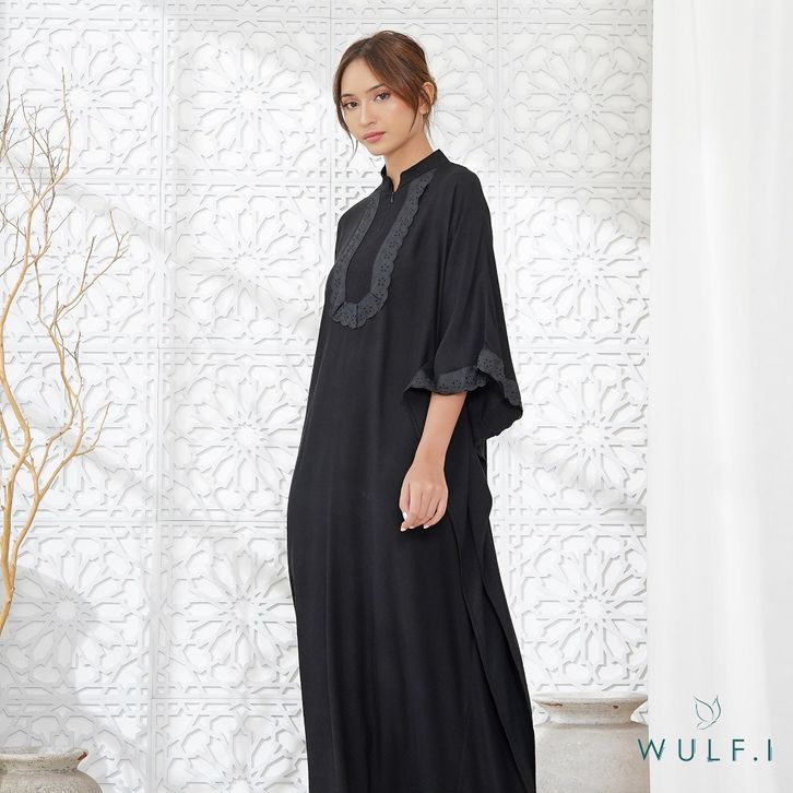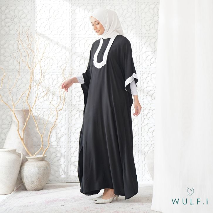 Kaftan Wanita Dewasa Wulfi Abaya Aminah Hitam Dengan Renda