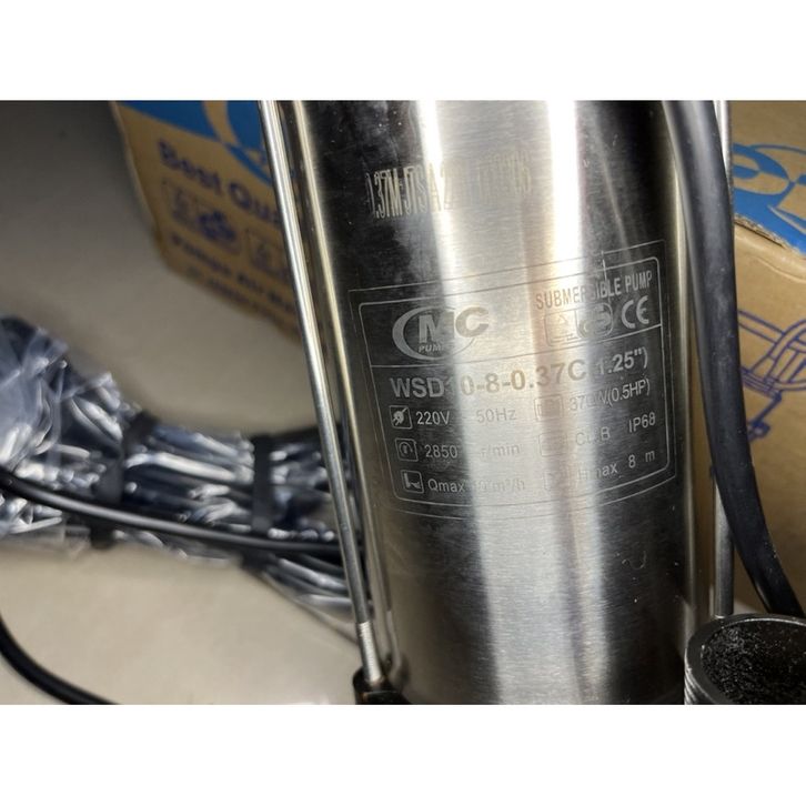 MC WSD 10-8-0.37C POMPA CELUP STAINLESS HEAVY DUTY 0.5HP 1.25" AIR KOTOR BERSIH MANUAL SUBMERSIBLE PUMP BESI SATELIT 0,5