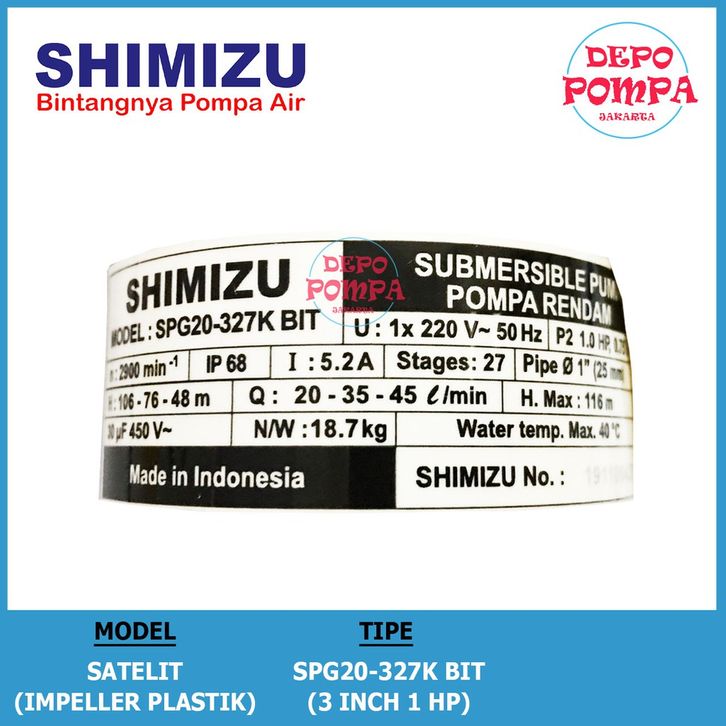 POMPA AIR SATELIT SHIMIZU 3 INCH 1 HP KOMPLIT KABEL BIRU ASLI