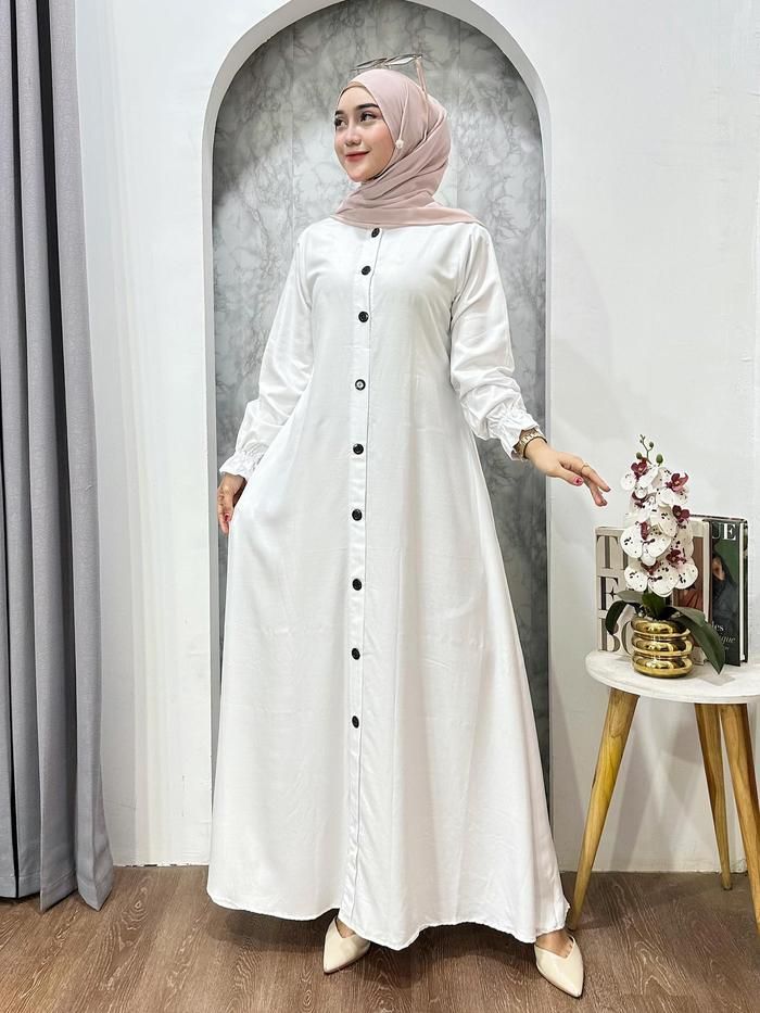 NikmatBatik - Gamis Putih Polos Bersih - Bahan Twill Ori - Kancing Karet Muslim Cantik Kain Lembut Panjang Samping Dres