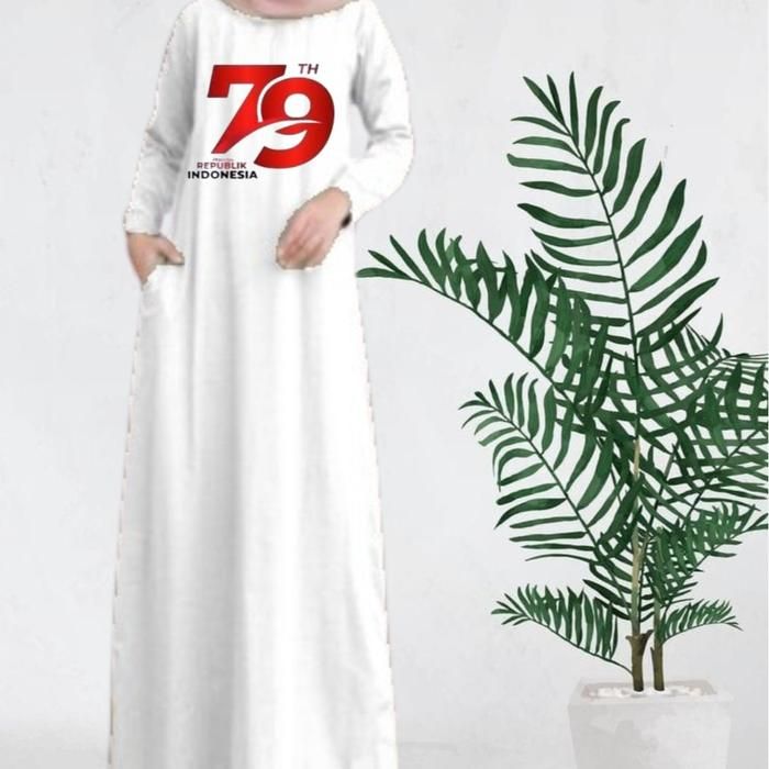 Baju Gamis Wanita Merah Putih BO Bahan Kaos Katun Combed Aplikasi Sablon Dress Muslimah Dewasa Jumbo Oversize S M L XL