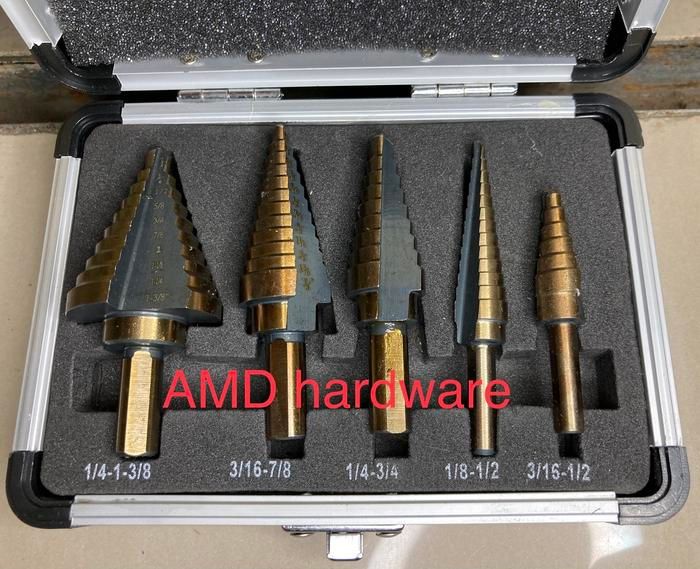 Mata Bor TITANIUM COATED MATA BOR PAGODA SPIRAL HSS STEP DRILL BIT SET isi 5pcs