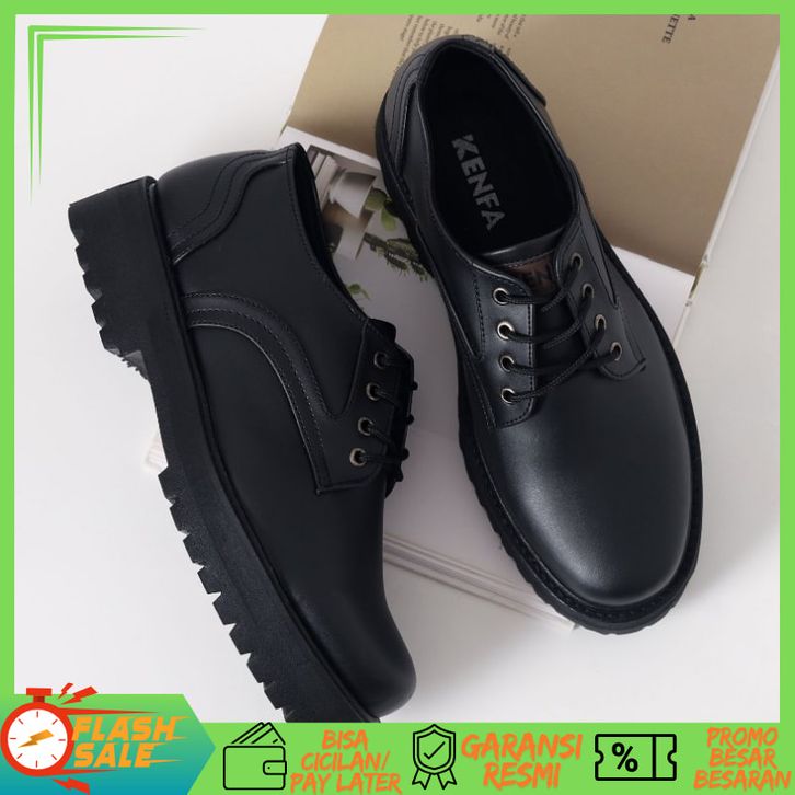 Kenfa Siho Black Sepatu Formal Pria Wanita Casual Kerja Kantor Pantofel Oxford Doctmart Hitam