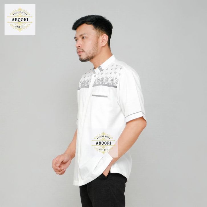 Baju Koko pria lengan pendek warna putih tulang bahan Katun Toyobo Size M L XL XXL Fashion Baju Koko Toyobo Bordir Le