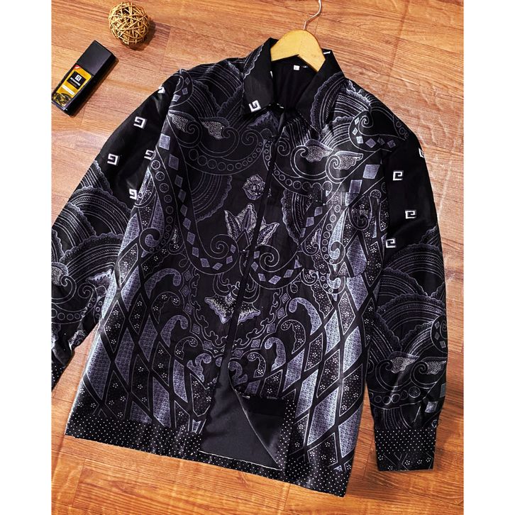 KEMEJA BATIK PRIA PREMIUM FULL FURING HITAM LENGAN PANJANG M L XL ATASAN NEW ARRIVAL