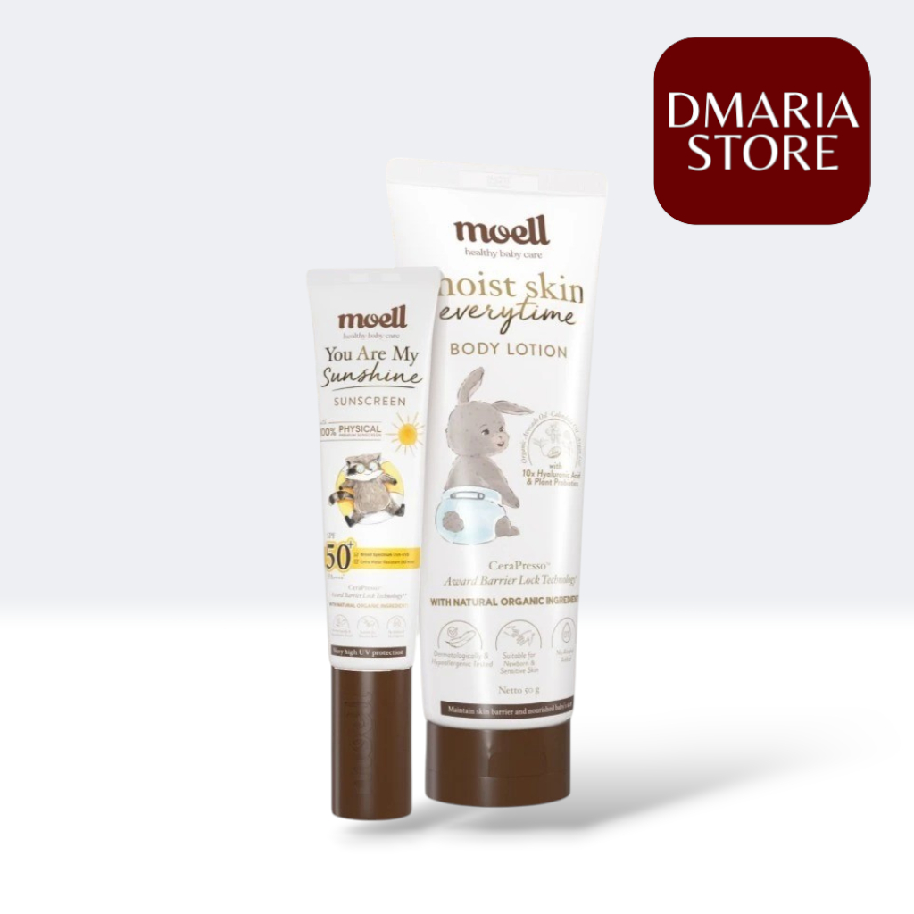 Moell Special Bundling Face Cream 40gr & Body Lotion 185gr - Skincare Baby - Natural Organic