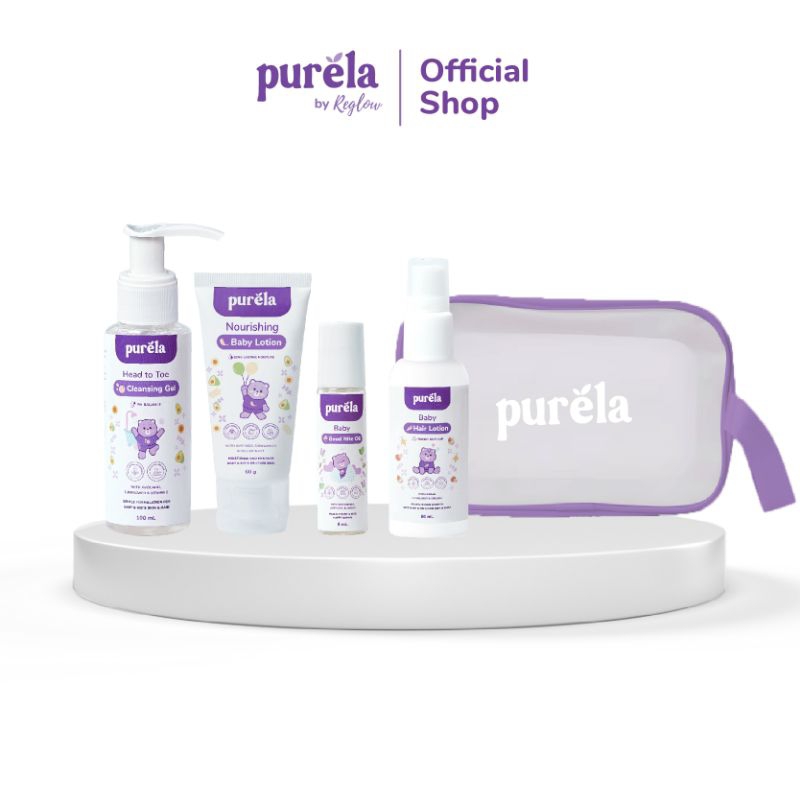 PURELA Paket 4in1 Kiddy Glow Skincare Free Pouch - Perawatan Pencerah Kulit Bayi Anak - Bahan Alami