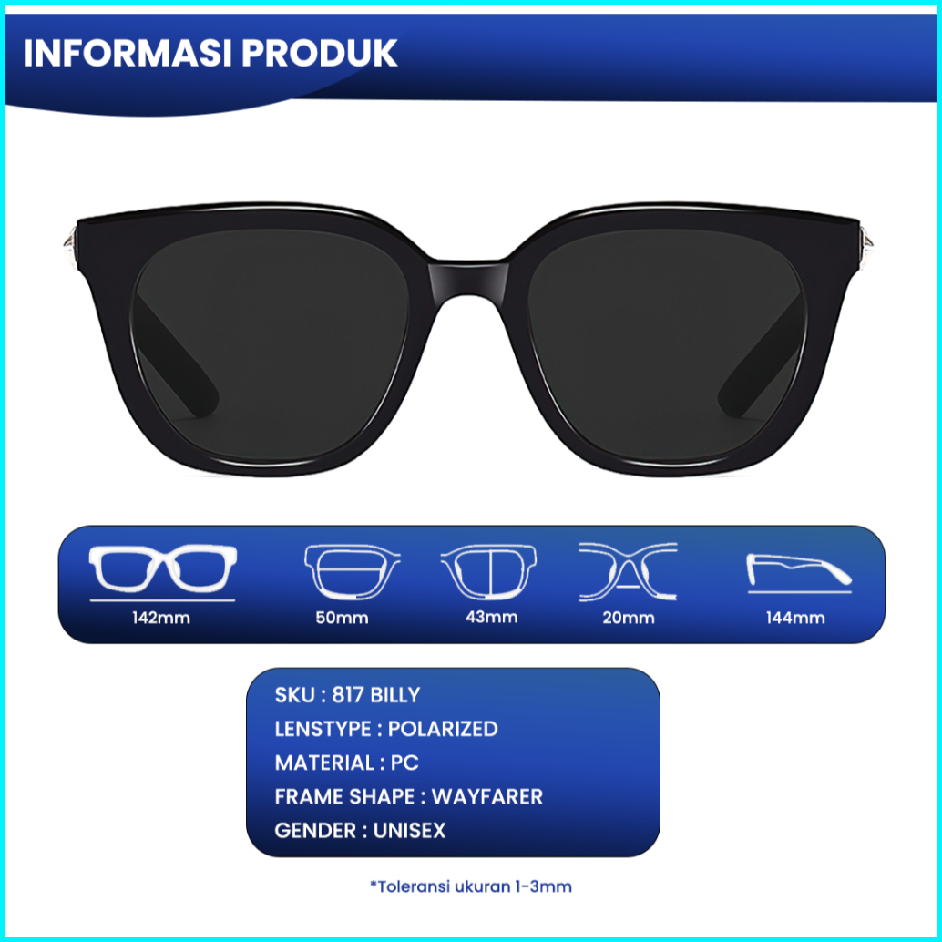 Iooi Eyewear - Kacamata Bulat Hitam Sunglasses Plastik Uv Protection Pria Wanita 817