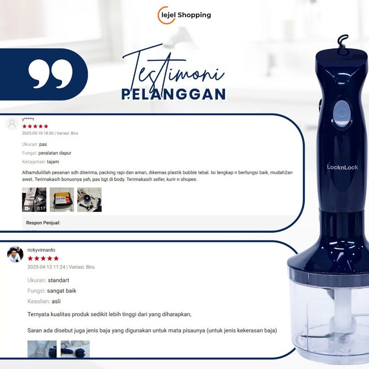 PROMO LOCKNLOCK Hand Blender Serbaguna - Jus, Cincang & Kocok Praktis