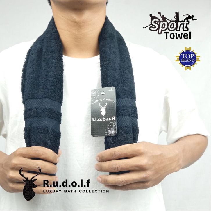 TERBARU Handuk Sport Kecil Olahraga Gym Katun Lembut RUDOLF 35×80cm Hitam ocobg