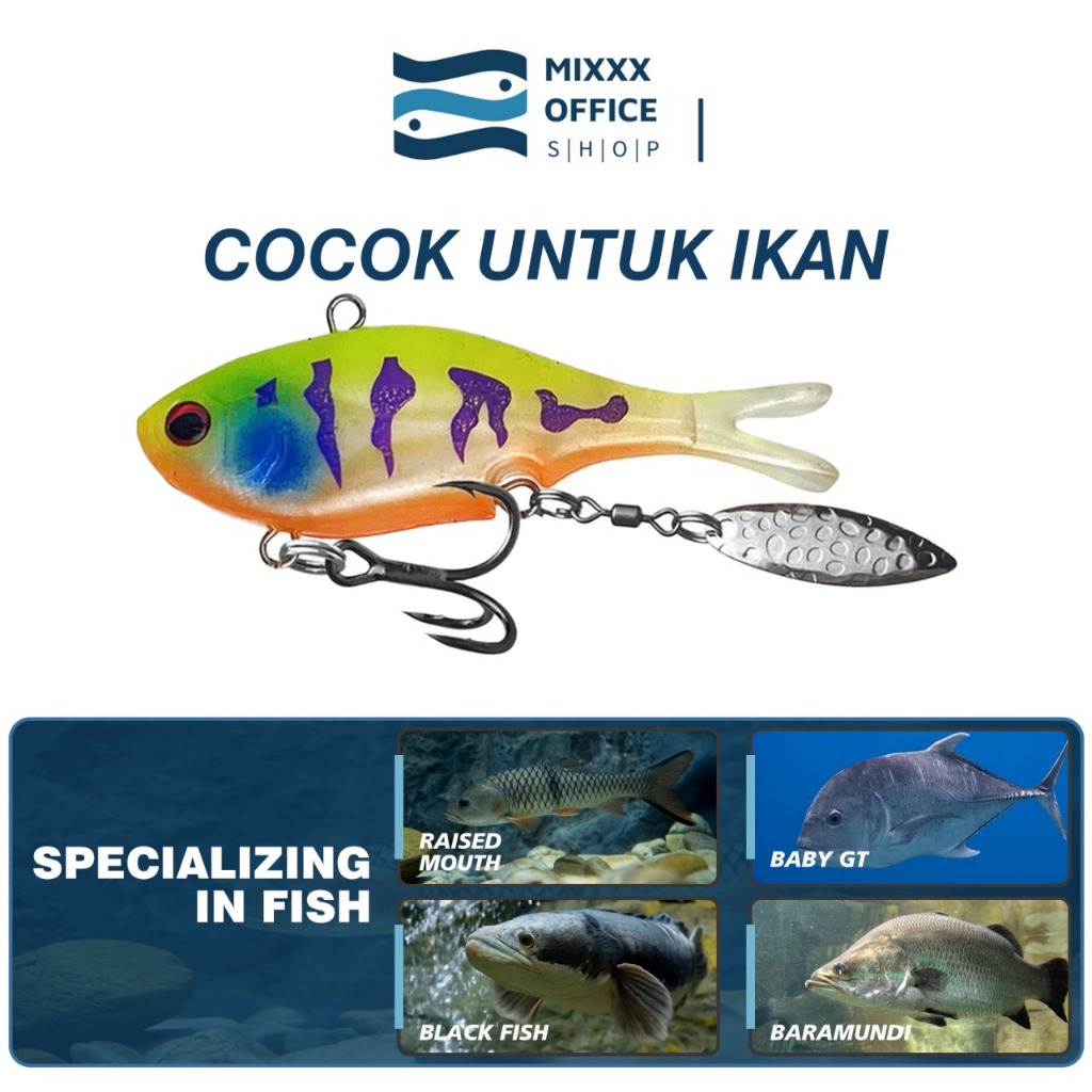 Umpan Lure Ikan Ekor Potong Berat 6.5g/11g/14g Getaran Kuat Lapisan Air Lengkap 3 Mata Kait Kilauan Target Bass & Perch