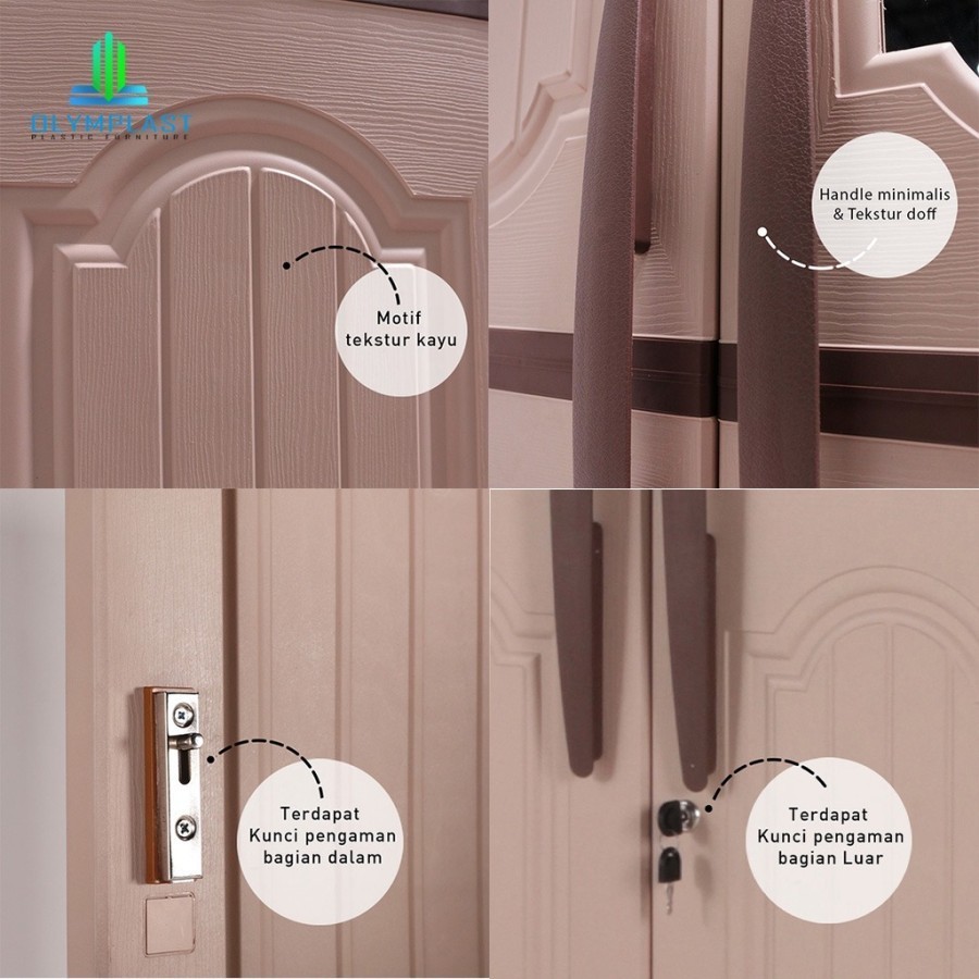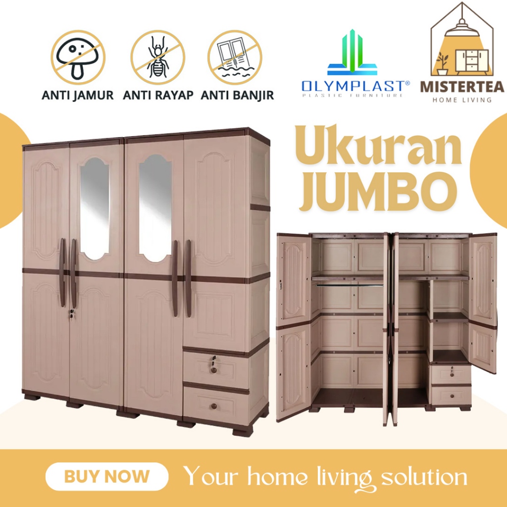 OLYMPLAST Lemari Pakaian OTC WOOD 4 Pintu | Lemari Plastik Besar | Lemari Pakaian Plastik Modern