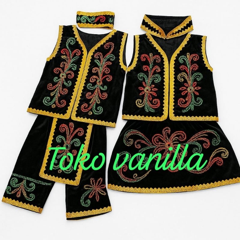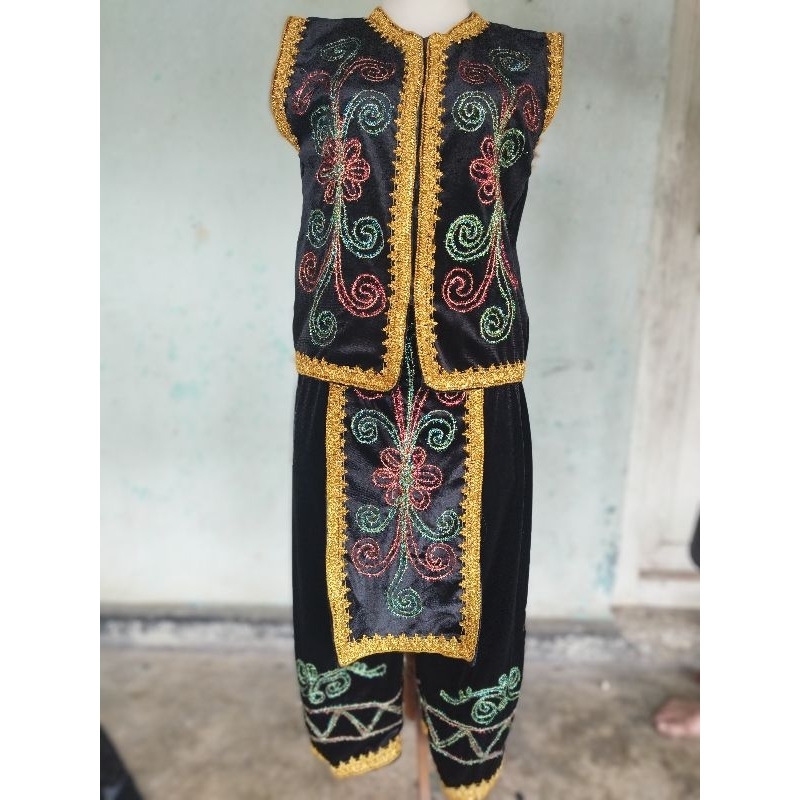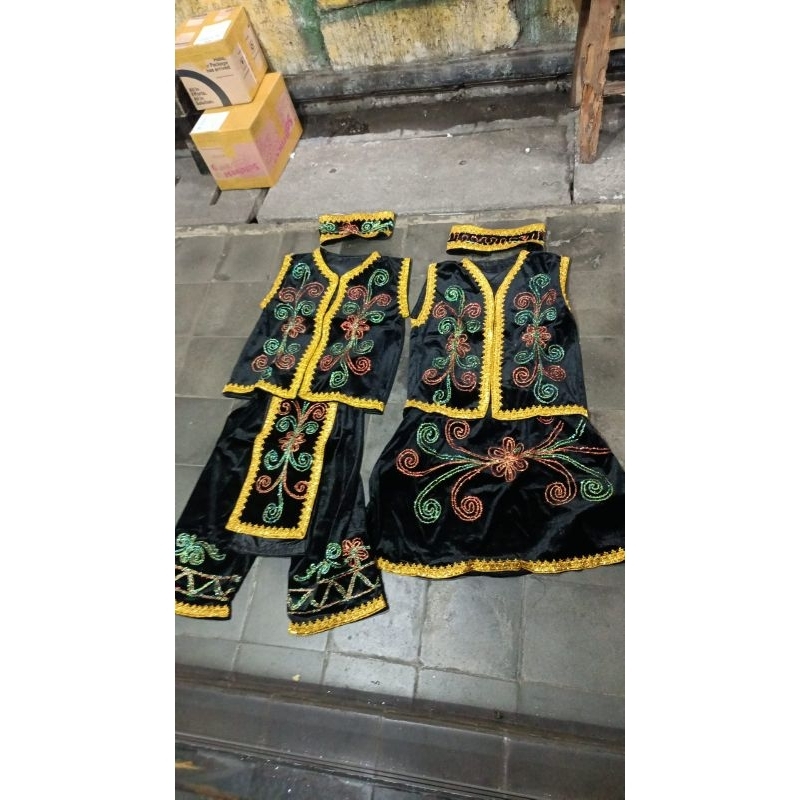 BAJU ADAT DAYAK COWOK DAN CEWEK BAHAN BELUDRU+DENGAN AKSESORISNYA