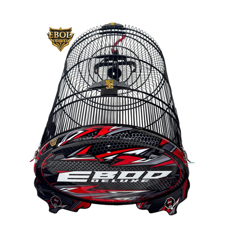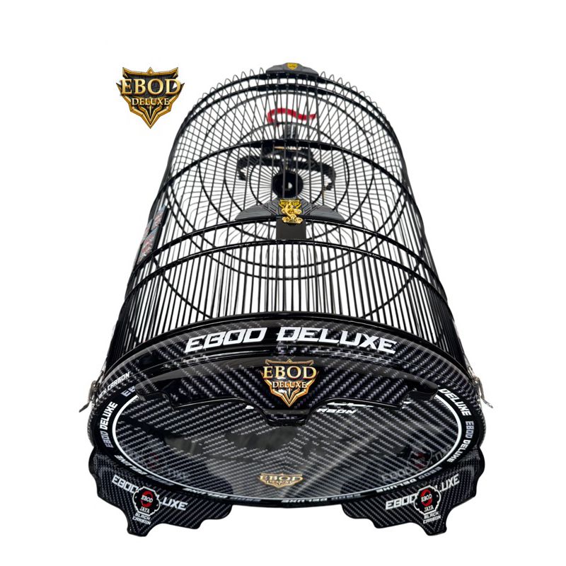 (TERBARU 2025) Sangkar Murai Ebod Deluxe Ruji Fiber & Ruji Bambu Pvc. No.2 Water Slide Decal Motif Karbon Racing Terbaru