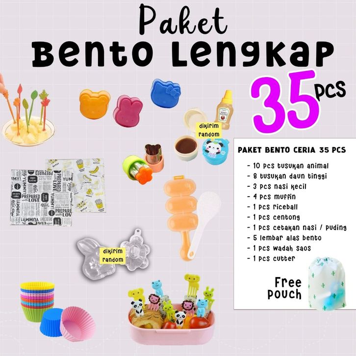 1 Paket Bento Hemat Lengkap Tusukan Cetakan Bekal Anak Riceball Botol Saus Kotak Makan Anak Karakter Best Seller Premium