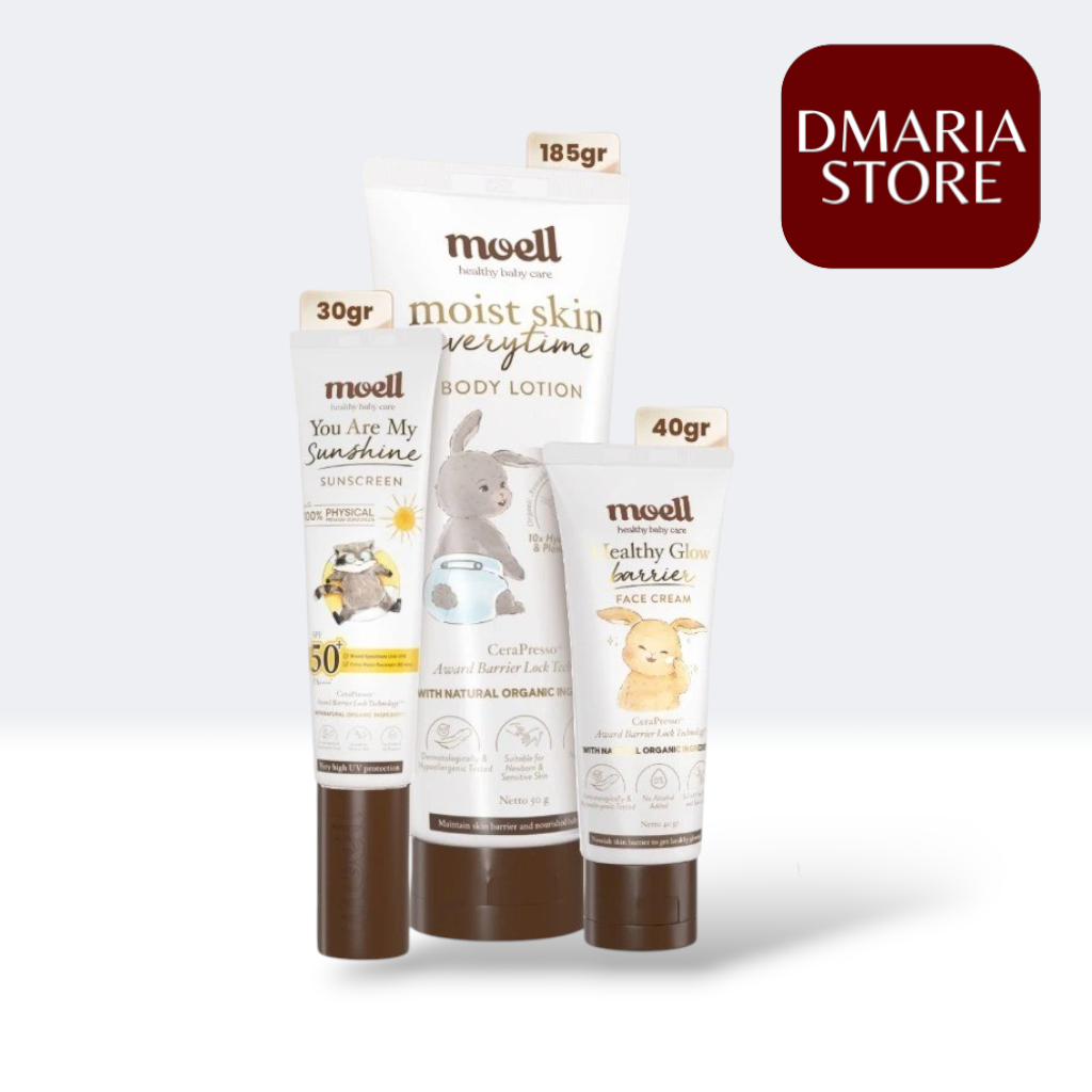 Moell - Face Cream 40gr & Physical Sunscreen 30gr & Body Lotion 185gr - Skincare Baby