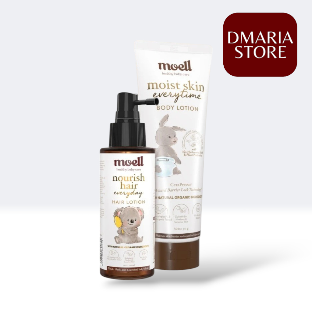 Moell Special Bundling Body Lotion 185gr & Hair Lotion 100ml - Skincare Baby - Natural Organic