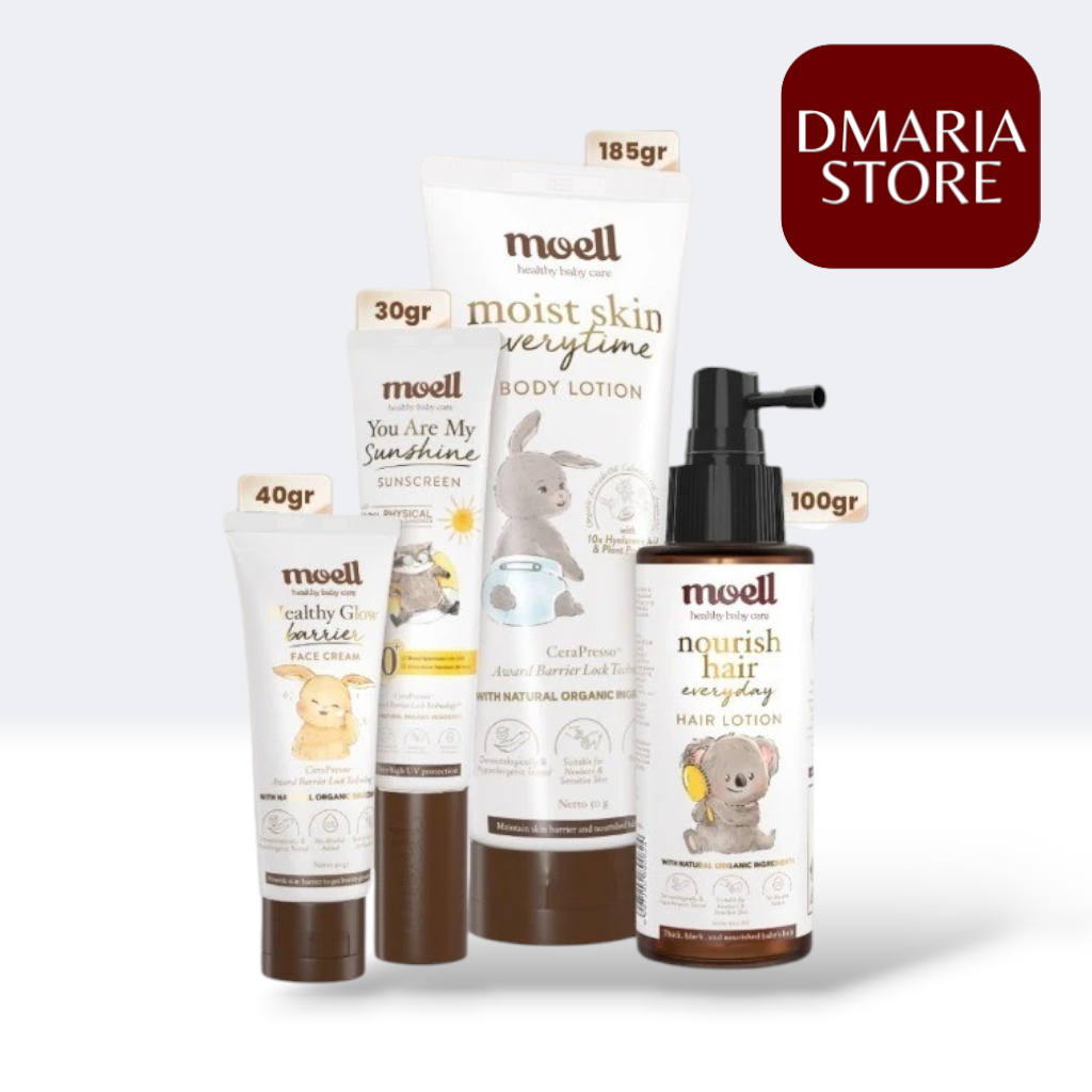 Moell Exclusive Combo - Body Lotion 185gr & Hair Lotion 100ml & Sunscreen 30gr & Face Cream 40gr