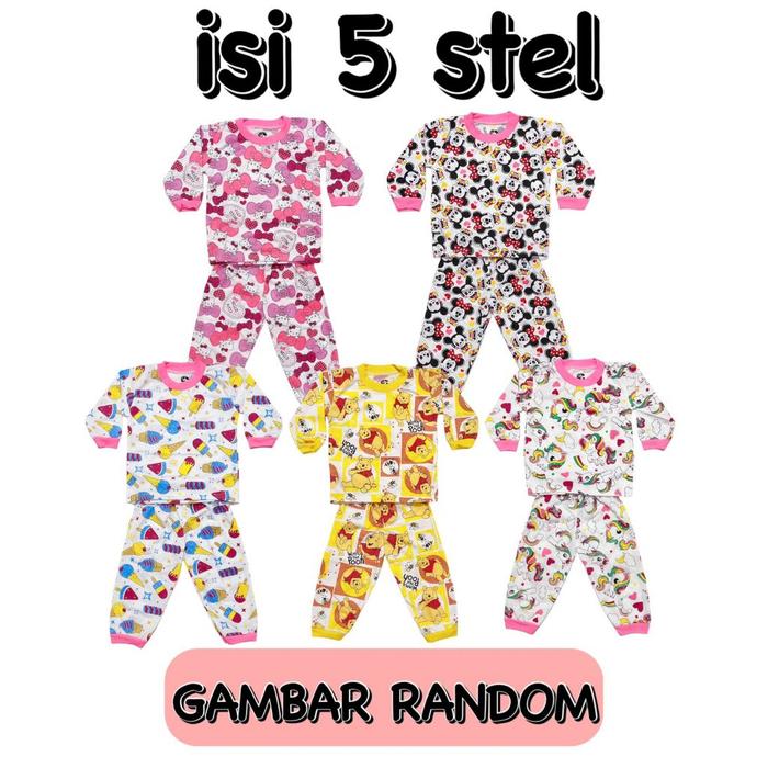 PAKET BAJU TIDUR ANAK KIDS LAKI-LAKI/COWOK PEREMPUAN/CEWEK SETELAN/STELAN BAHAN KAOS KATUN - 3 STELPEREMPUAN S (0-1 THN)