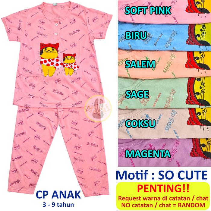 Baju Tidur Anak Perempuan CLOVER CP Kaos Celana Panjang 3-9 Tahun - Motif 1 S