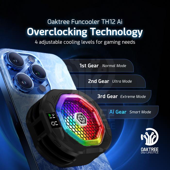 Oaktree Funcooler TH12 Ai Fan Cooler Radiator Pendingin HP Cooling Fan Gaming - Hitam
