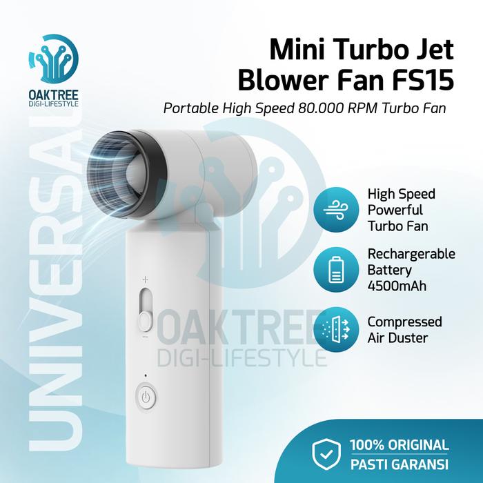 Oaktree FS15 Kipas Angin Turbo Fan Blower High Speed 80000 RPM Portable USB Rechargerable Battery - White