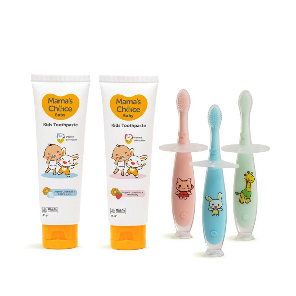 Pasta Gigi Anak + Sikat Gigi Bayi 0+ Bulan | Mama's Choice Baby Oral Care Bundle - My First Toothbrush (Sikat Gigi Baby)