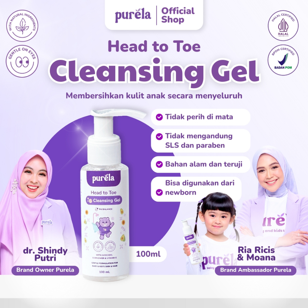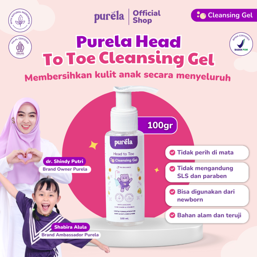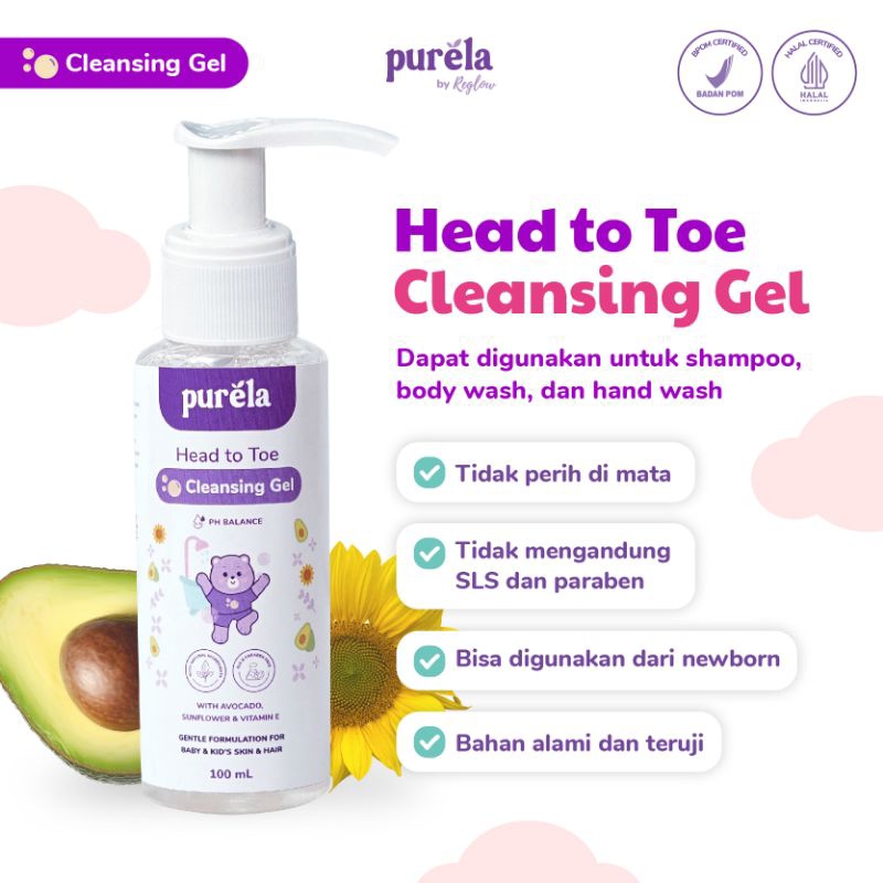 PURELA Head to Toe Cleansing Gel 100ml - Sabun Sampo Mandi Bayi Anak Untuk Kulit Sensitif - Sabun untuk Newborn - Sabun