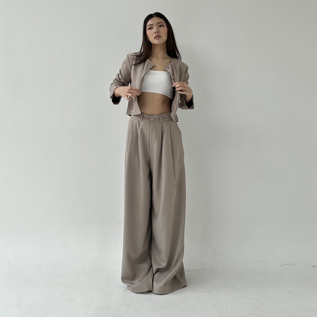 Celana Panjang Wanita Wide Highwaist Pants Basic Korean Long Trousers Murah Posha