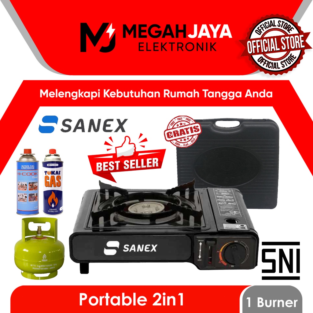 [JAMINAN TERMURAH] KOMPOR PORTABLE 2 IN 1 GAS PORTABLE SANEX (1TUNGKU)