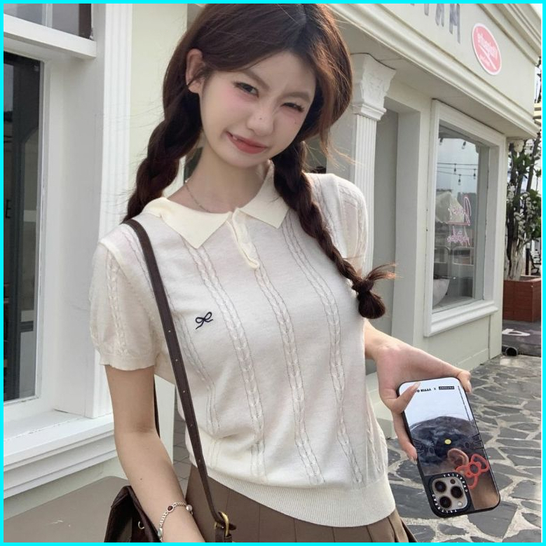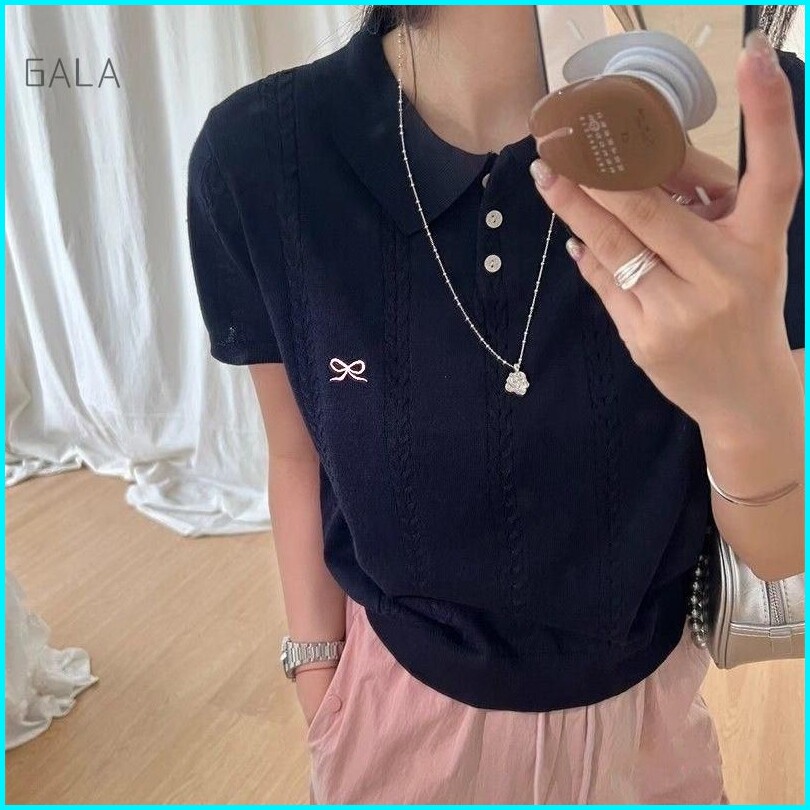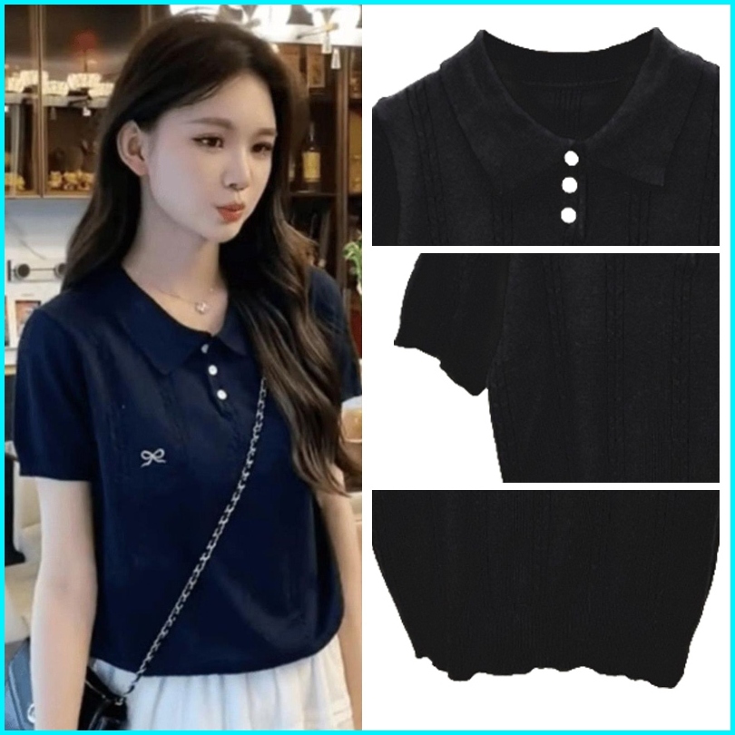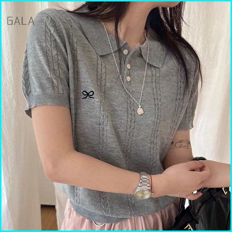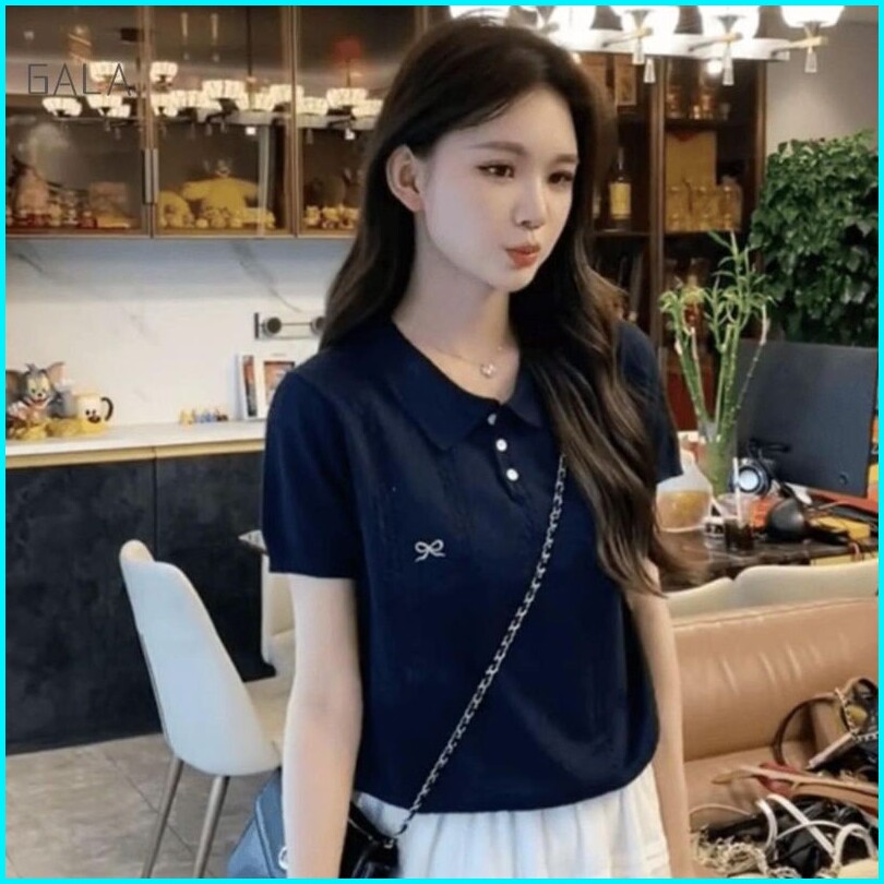 Atasan Kaos Kerah Rajut Wanita Dane Top Knit Polo Knit Wanita Lengan Pendek Ga