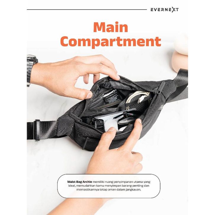 Tas Selempang Pria Elegan Evernext Waist Bag Archie Anti Air - Tampilan Simpel & Minimalis Original Official Store
