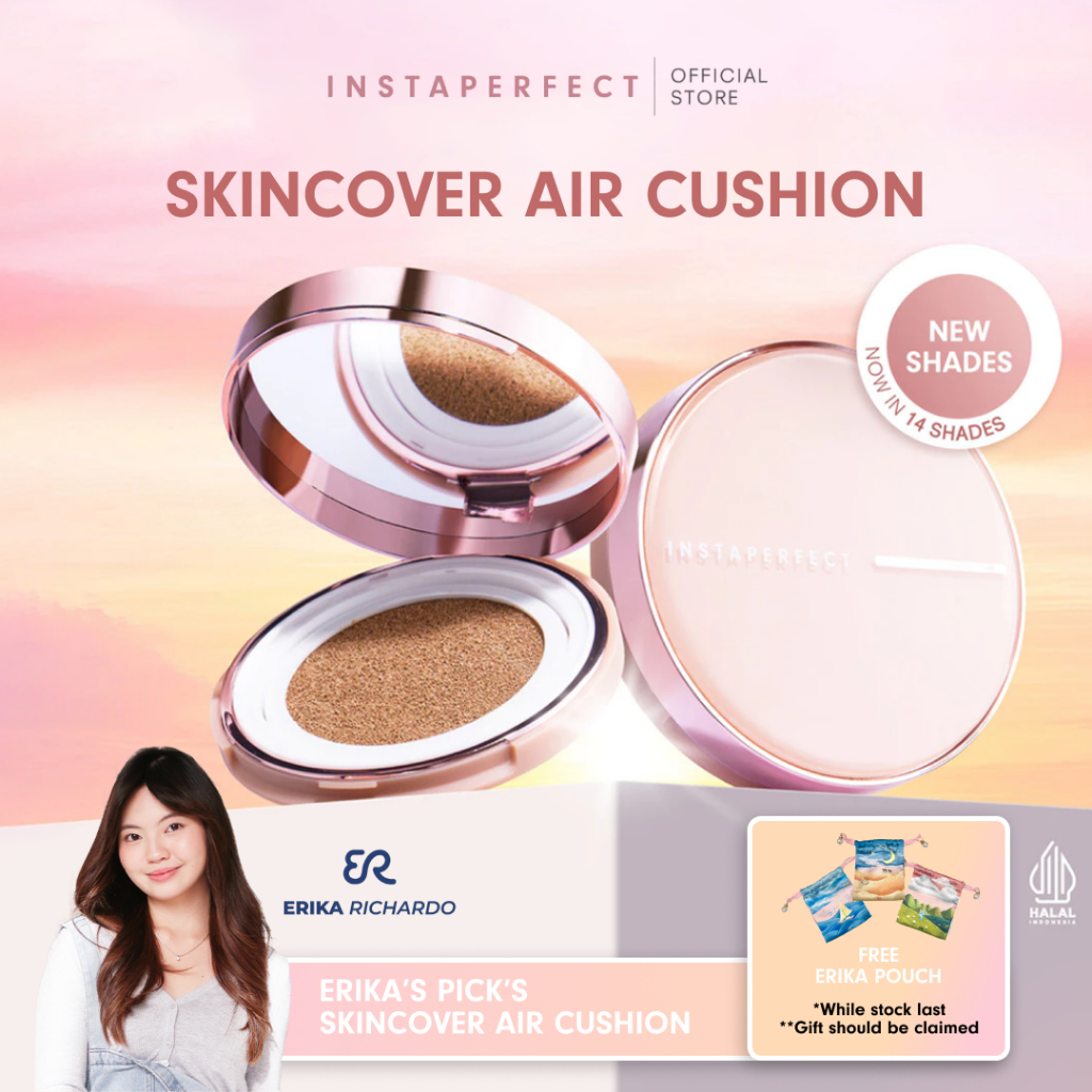 [FREE EXCLUSIVE POUCH BY ERIKA] Instaperfect Skincover Air Cushion SPF 50++++ 11g - Make Up Cushion Foundation Semi Matte Finish (Real Skin Buildable Coverage, Transferproof, Non Comedogenic)