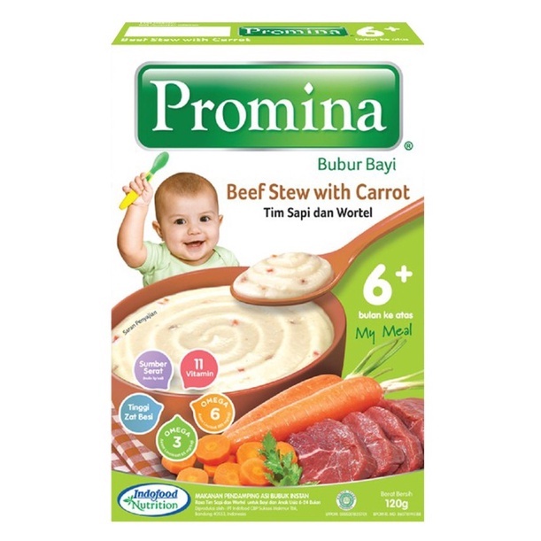 Promina Bubur bayi 6+ 120g tim sapi Wortel,ayam kampung brokoli,salmon labu madu,B.merah ,Pisang, K.hijau Terlengkap Ter