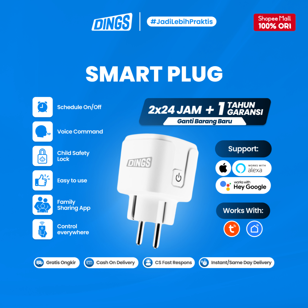 DINGS PAKET HEMAT 2 SMART PLUG WIFI COLOKAN STOP KONTAK STEKER LISTRIK PINTAR SMART HOME