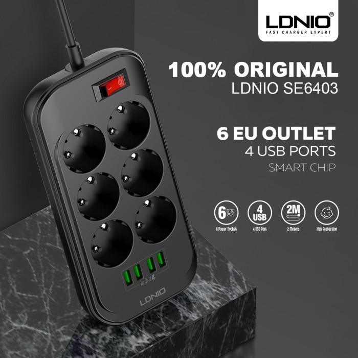 LDNIO SE6403 STOP KONTAK POWER SOCKET 6 SOCKET 4 USB AUTO-ID ORIGINAL GARANSI RESMI