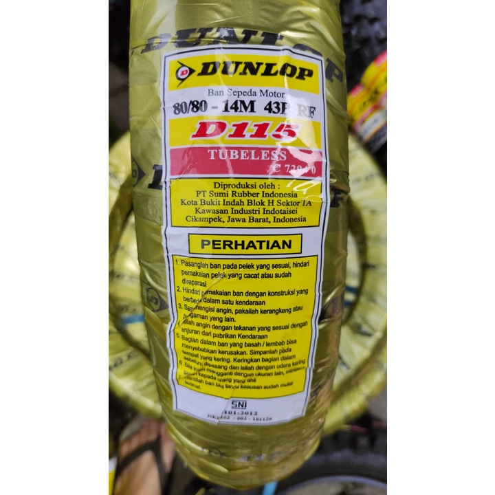 Ban Dunlop 80 80 - 14 D115 Versi Tubeless Free Pentil matic beat Mio