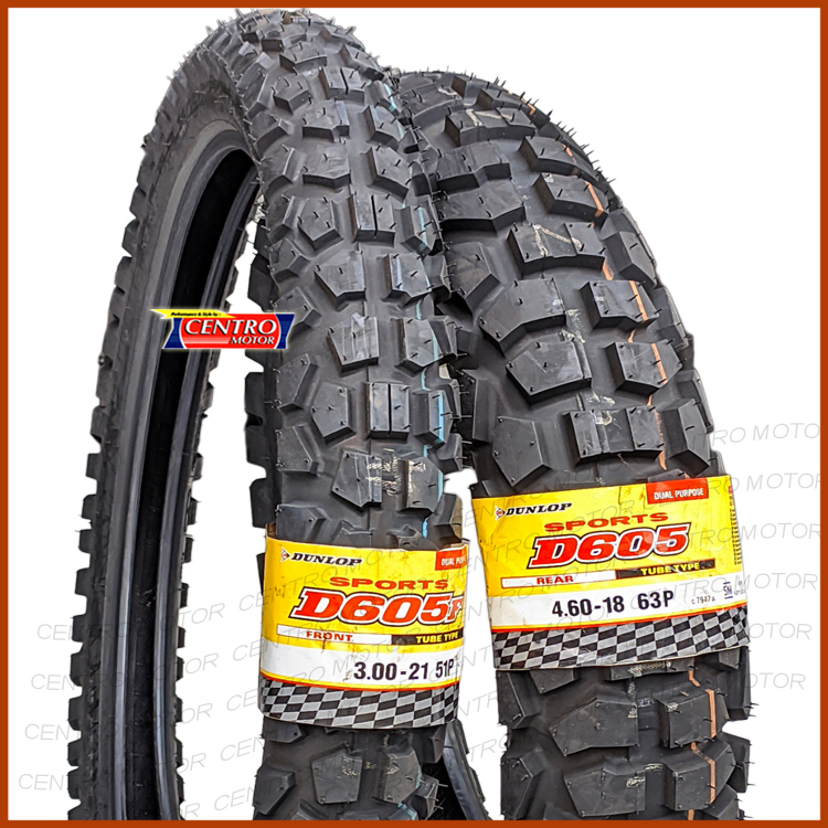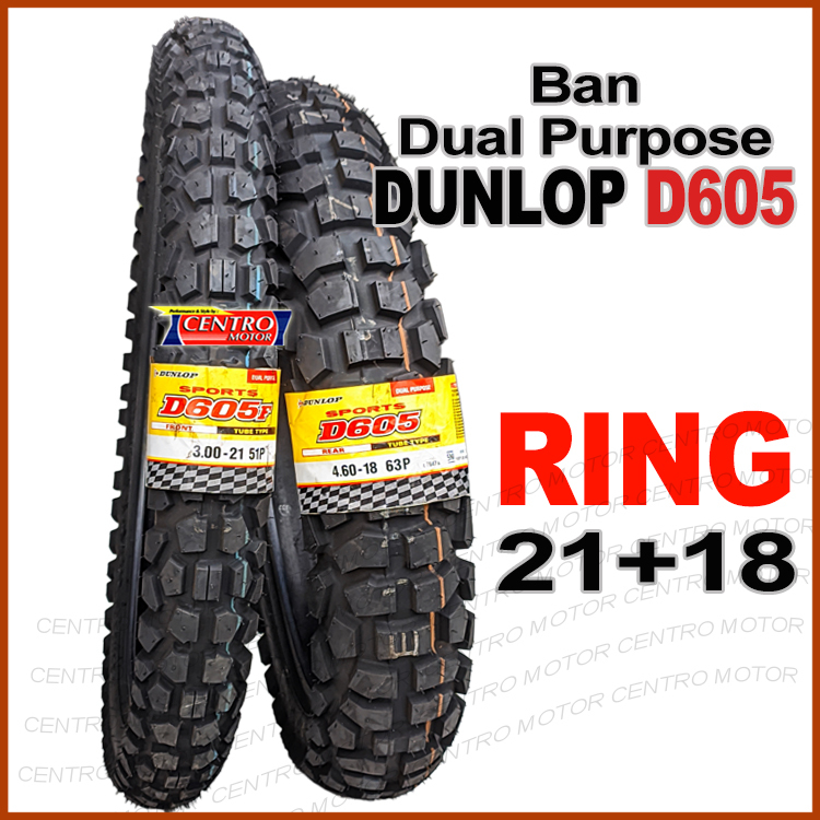 Dunlop D605.Paket Ban Dual purpose CRF, KLX BF, WR155.Ring 21+18.