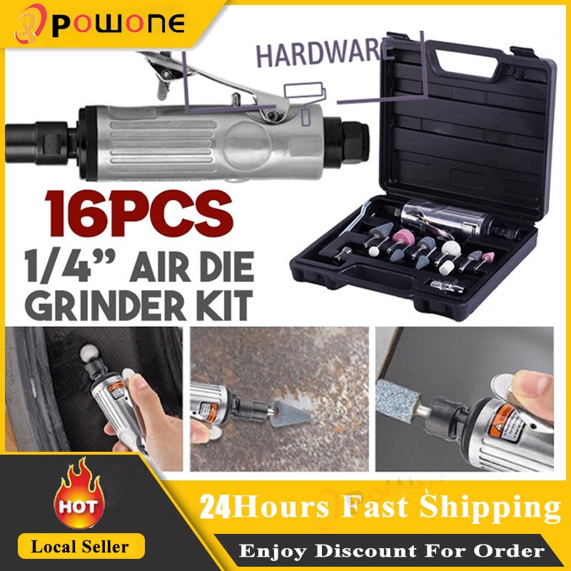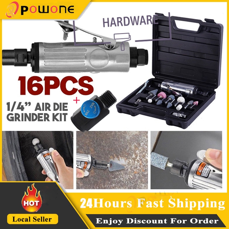 16PCS AIR DIE GRINDER FULL SET KIT 1/4" MESIN GERINDA ANGIN