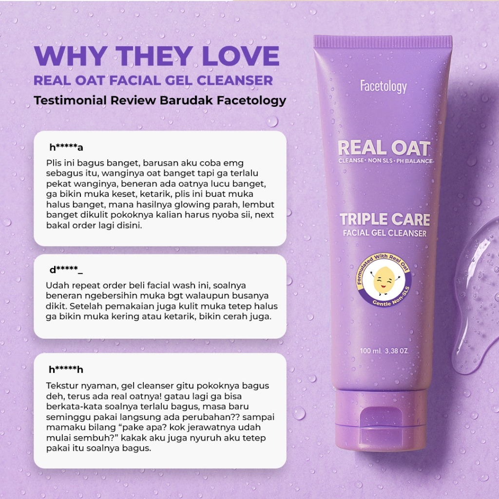 Facetology Triple Care Facial Gel Cleanser Sabun Cuci Muka Gentle Low PH Oat Senstive skin All skin Types acne