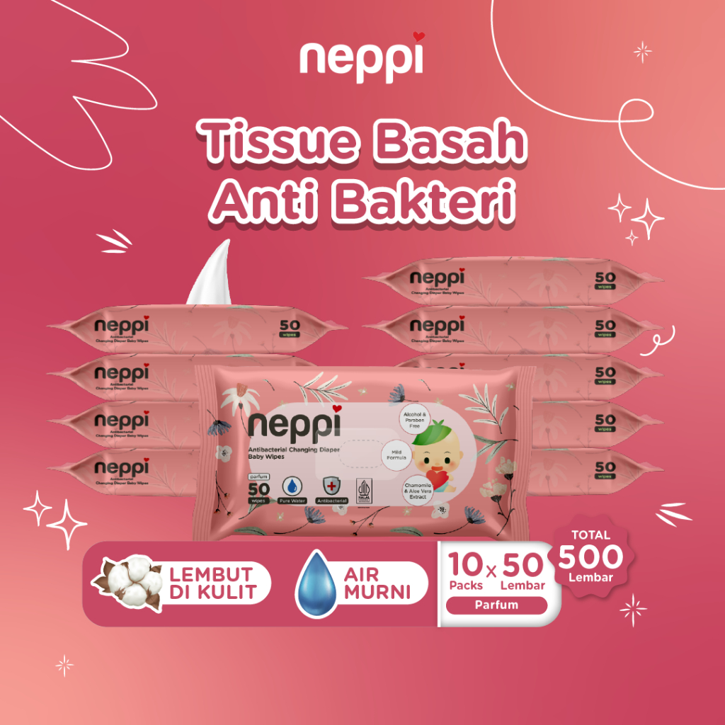 10 Pcs x 50 Lembar Neppi Tisu / Tissue Basah Antibacterial Changing diapers Wipes Parfum