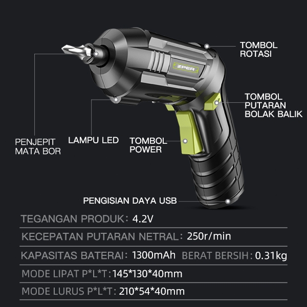 ZPER MESIN BOR BATERAI 4.2V OBENG LISTRIK CORDLESS DRILL BATTERY BOR KAYU TRIPLEK BESI BOR ZP016