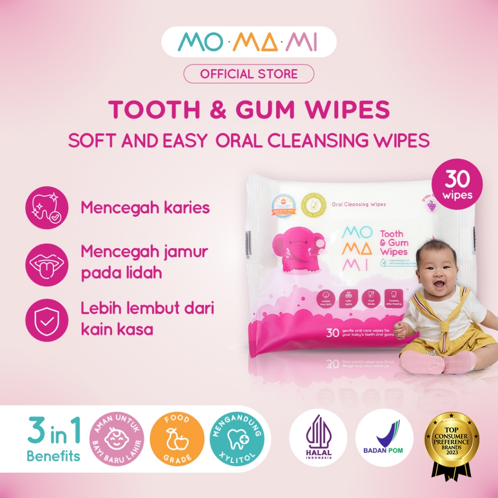 Momami Tooth & Gum Wet Wipes Baby Tissue - Tisu Basah Xylitol Pembersih Gigi Bayi Travel Friendly