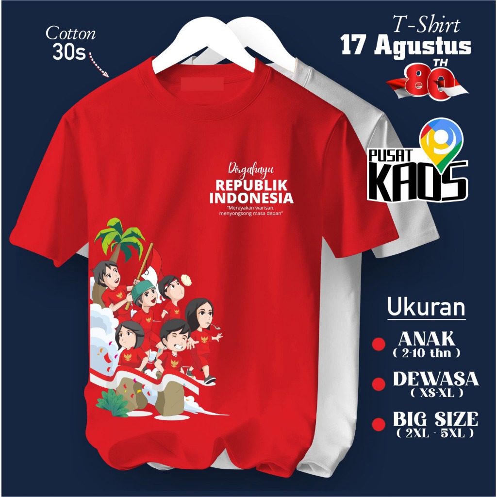 BAJU KAOS DIRGAHAYU INDONESIA 17 AGUSTUS 2025 KAOS HUT RI KE 80 ANAK DEWASA PREMIUM
