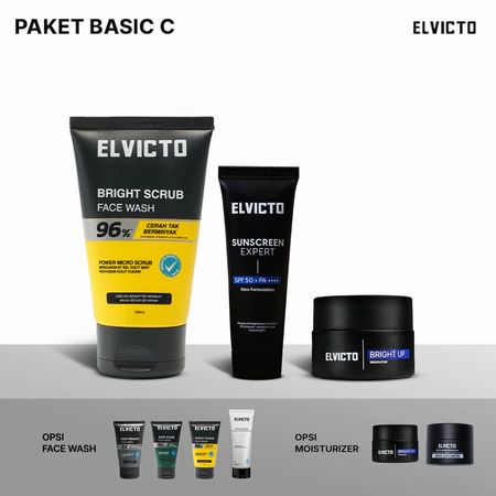 ELVICTO PAKET BASIC C Men Skincare Pria Glowing Mencerahkan Untuk Kulit Berjewat BPOM BEST SELLER