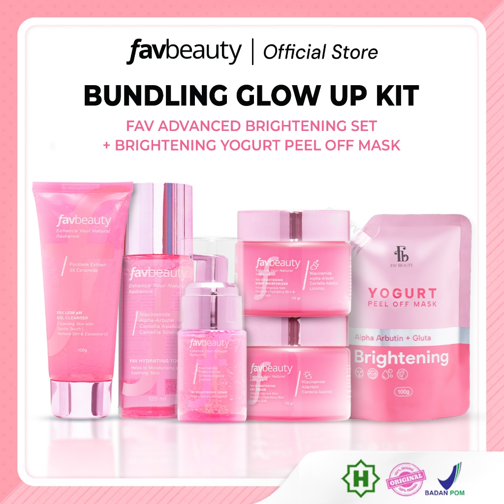 FAV BEAUTY Bundling Glow Up Kit Brightening Cleanser Toner Serum Day Cream Night Cream Mask BPOM