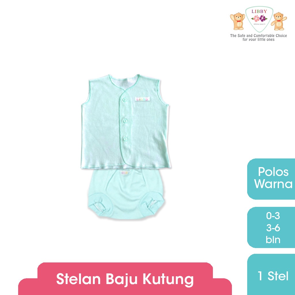 LIBBY Setelan Baju Kancing Newborn Unisex Polos Warna dan Putih Random (1 Stel)