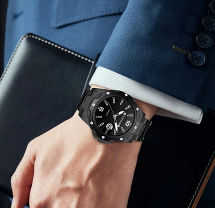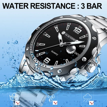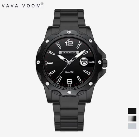 VAVAVOOM 2411 Jam Tangan Pria Olahraga Kuarsa Otomatis Date Tali Stainless Steel Kasual Pria Jam Tangan